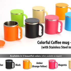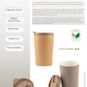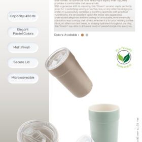 EcoWave- Stainless Steel Double wall Coffee mug – Outer body made of Wheat And Rice husk – Leak Proof – Capacity 425ml approx