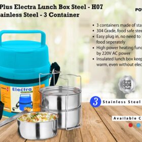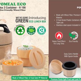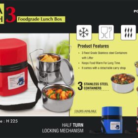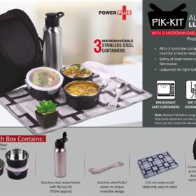 PIK-KIT Joy- All in 1 Lunch box with 3 Square Stainless Steel containers with striped design – Contains SS bottle, Fork, Spoon, Tablemat, Premium Bag – Bag has 2 outer pockets