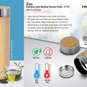 EcoVault 700- 700 ml vacuum flask with Bamboo lid – 304 steel inside and outside – 18 hours hot/cold
