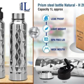 ClearSip 1000- Borosilicate Glass Bottle with Steel cap – Capacity 1000ml