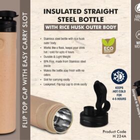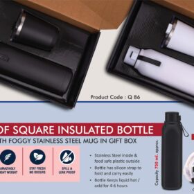Square II Eco- Eco Friendly Insulated Steel Bottle – Keeps Hot and Cold for 4-6 Hours – Strap for Carrying easily – Capacity 750 ml approx – Made with Wheat fiber