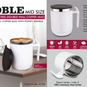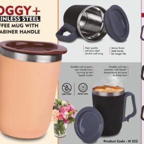 Noble – Mid Size Stainless Steel Double wall Coffee mug with Pointy handle – Leak Proof – Capacity 250ml approx
