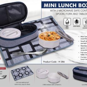 Mini Lunch box bag with 2 Microwave safe containers, Spoon, Fork and Tablemat