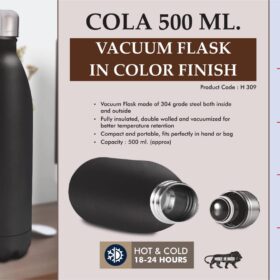 Cola 500 ml Vacuum flask in Color Finish -304 steel inside and outside – 18 hours hot/cold