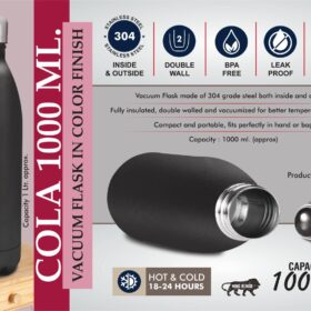 Cola 1000 ml Vacuum flask in Color Finish – 304 steel inside and outside – 18 hours hot/cold