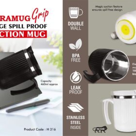 DuraMug Grip- Large Spill Proof Suction steel mug with Flip Top Lid -Capacity approx – Stainless steel inside