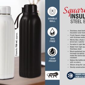 Square II- Insulated Steel Bottle – Keeps Hot and Cold for 4-6 Hours – Strap for Carrying easily – Capacity 750 ml approx