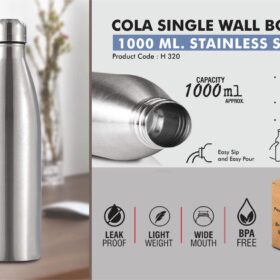 Cola 1000 ml Vacuum flask in Steel Finish – 304 steel inside and outside – 18 hours hot/cold