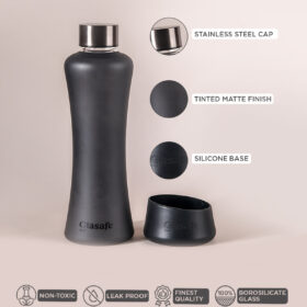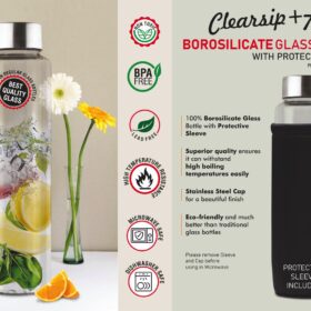 ClearSip+ 750- Borosilicate Glass Bottle with Protective Sleeve – Steel cap – Capacity 750ml