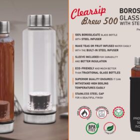 ClearSip Brew 500- Borosilicate Glass Bottle with Steel Infuser – Steel cap -Capacity 500ml