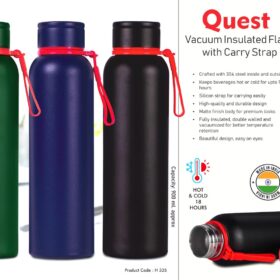 Quest 900ml Vacuum Insulated Flask with Carry Strap – 304 steel inside and outside – 18 hours hot-cold