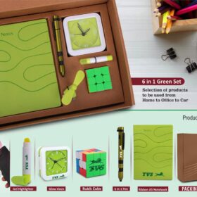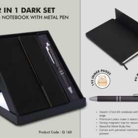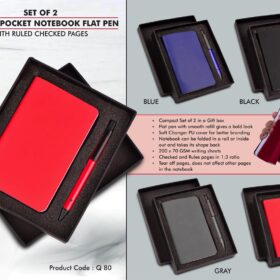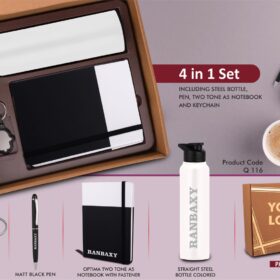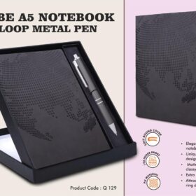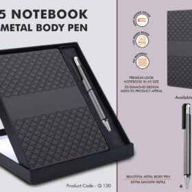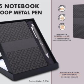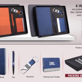 4 pc Notebook Set- A6 size notebook, Metal Pen, Loop Keychain and Visiting card holder in Gift box