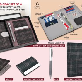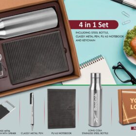 4 in 1 Gray set- Metal keychain, SS bottle, Metal Pen and A5 PU notebook in Kraft Gift Box