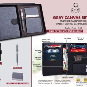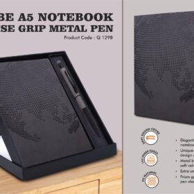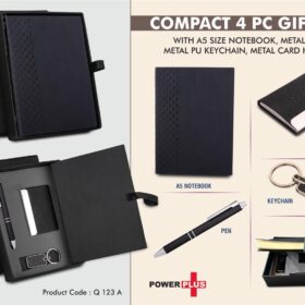 Compact 4 pc Gray gift set- A5 size Notebook, Metal pen, Metal PU Keychain, Metal Card holder