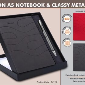 Ribbon Notebook Gift set- A5 Ribbon Notebook With Classy Metal Pen
