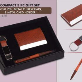 Compact 3 Pc Tan Gift Set- Metal Pen, Metal Pu Keychain, and Metal Card Holder