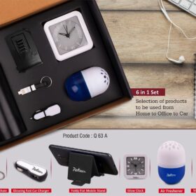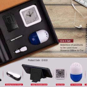 6 in 1 set- Steel Water bottle (750ml), Adjustable mobile stand, Jack Stylus with Mobile stand, Glowing Fast Car charger, Glow Clock, Air freshener
