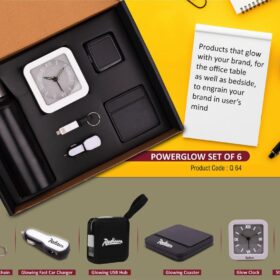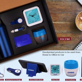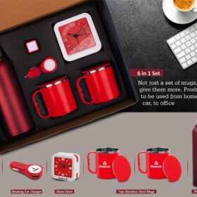 6 in 1 set- Steel Water bottle (750ml), Mobile stand, Charging cable with keychain, Glowing Car charger, Glow Clock, SS mug