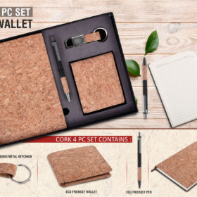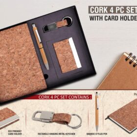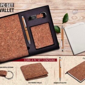 Cork 4 pc set- Cork notebook with Wallet, bamboo pen and keychain