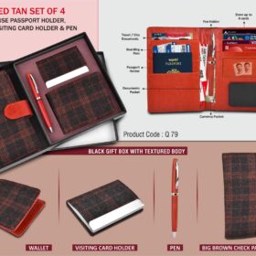 Compact 4 pc Tan gift set- A5 size Notebook, Metal pen, Metal PU Keychain, Metal Card holder