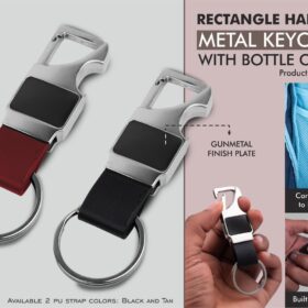 Rectangle hanging metal keychain with Bottle Opener – Black PU strap