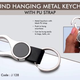 PU Key chain with Round Rotating Double side Gunmetal plate