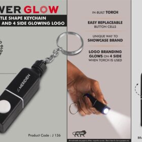 PowerGlow Bottle shape keychain with Torch and 4 side Glowing Logo