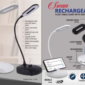 Rechargeable Flexi table lamp with Mobile stand – 3 step dimmer control – Feather Touch button