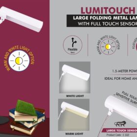 LumiTouch- Large folding Metal lamp with Full touch sensor – Warm and White Light option – Smooth dimmer function