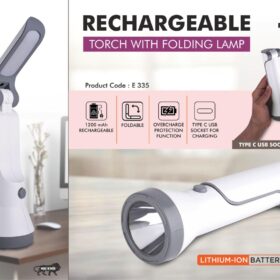 Rechargeable Torch with Folding Lamp – 1200 mAh rechargeable battery – Type C charging port