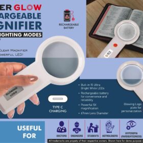PowerGlow Rechargeable Magnifier with 3 lighting modes and Glowing Logo plate – Type C charging