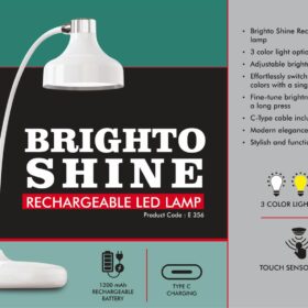 Brighto Shine – Rechargeable LED lamp – 3 Color light with Brightness adjustment |-Type C Charging