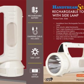 HandyBeam Sonic- Rechargeable Torch with Side Lamp – Charging Cable included