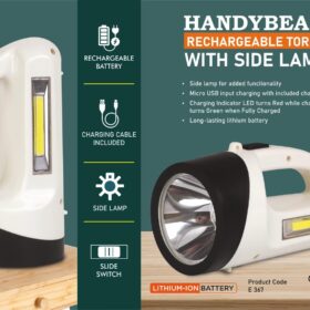 HandyBeam:- Rechargeable Torch with Side Lamp – Charging Cable included