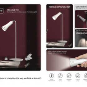 MagiFlex- Rechargeable Lamp with Detachable Head – 3 color light – Detachable head to use as torch – Durable metal neck