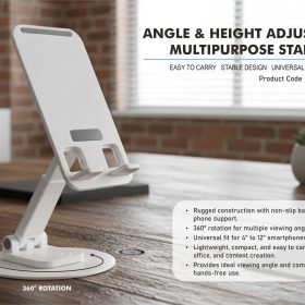 Find similar productsAngle & Height adjustable multipurpose stand – Suitable for mobile & tablets – Round Rotating base – Foldable body