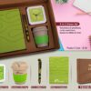 6 in 1 Green set- Rubik Cube, Gel Highlighter, Mobile Fan, 6 in 1 military pen, Glow Clock & A5 PU notebook in Kraft Gift Box