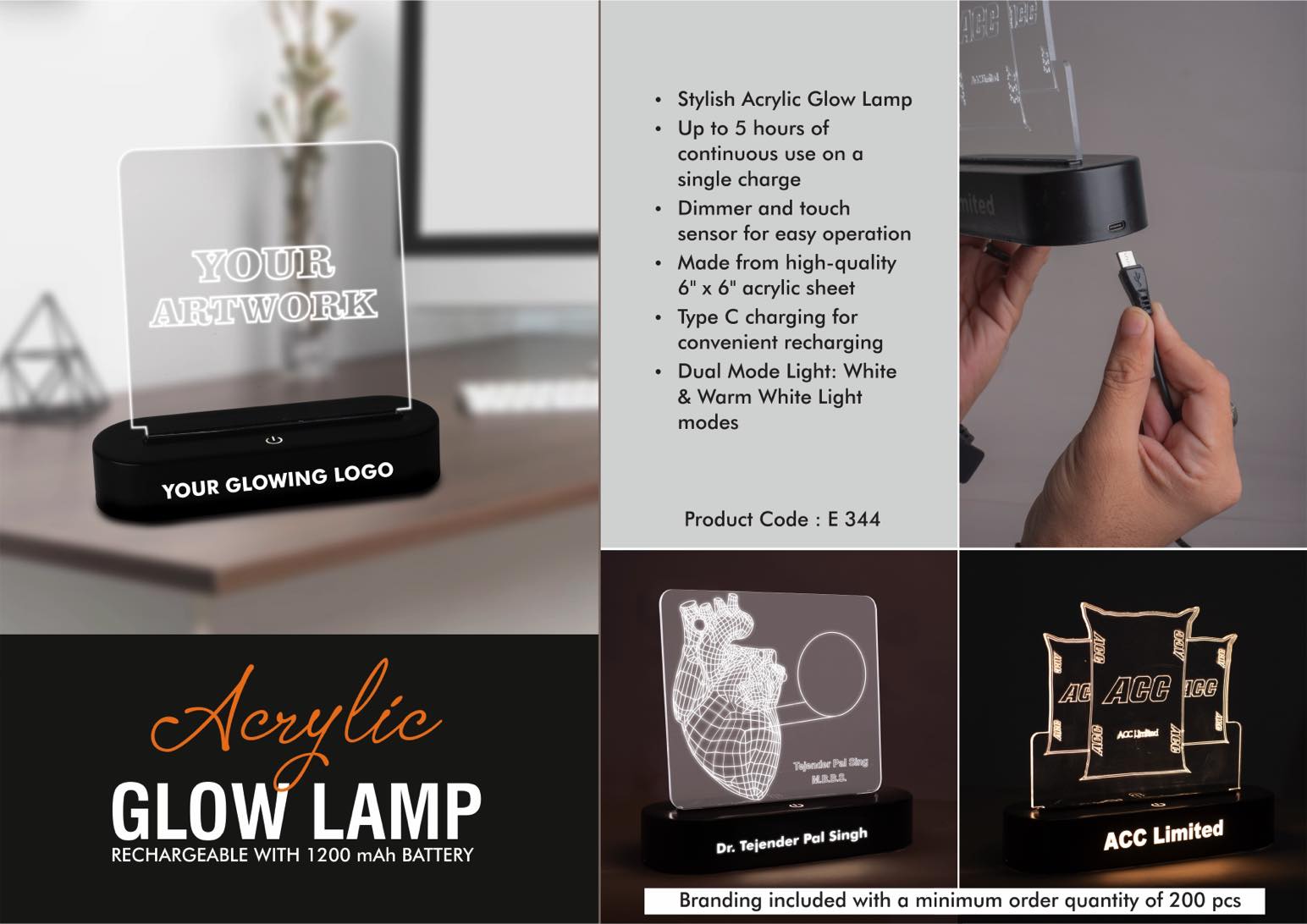 Acrylic Glow Lamp – Rechargeable with 1200 mAh battery with White and Warm white light| Dimmer and Touch Sensor- 6 x 6