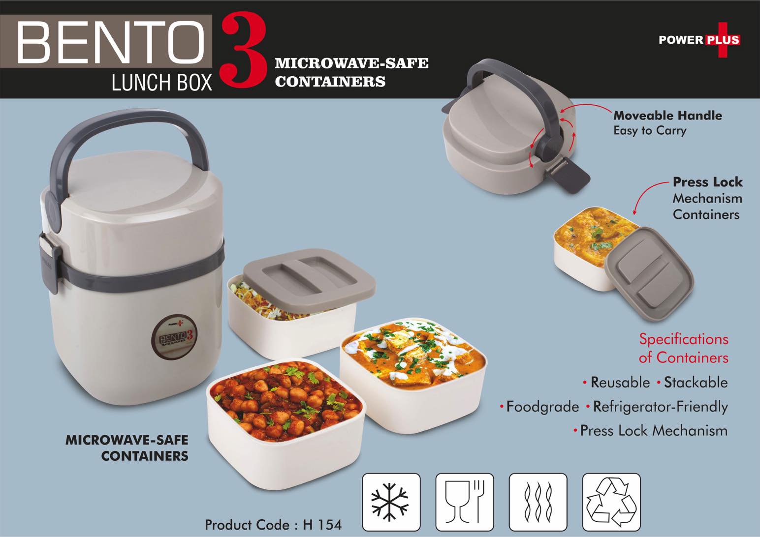 Bento Travel Lunch box with 3 plastic containers – Press Lock mechanism – Extra hidden compartment
