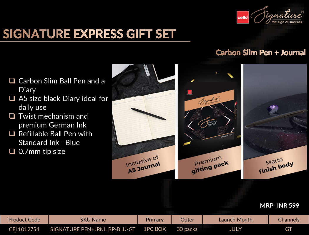 Cello Signature Express Giftset-Carbon Slim Ball Pen and a Diary