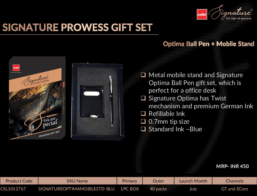 Cello Signature Prowess Giftset -Metal mobile stand and Signature Optima Ball Pen
