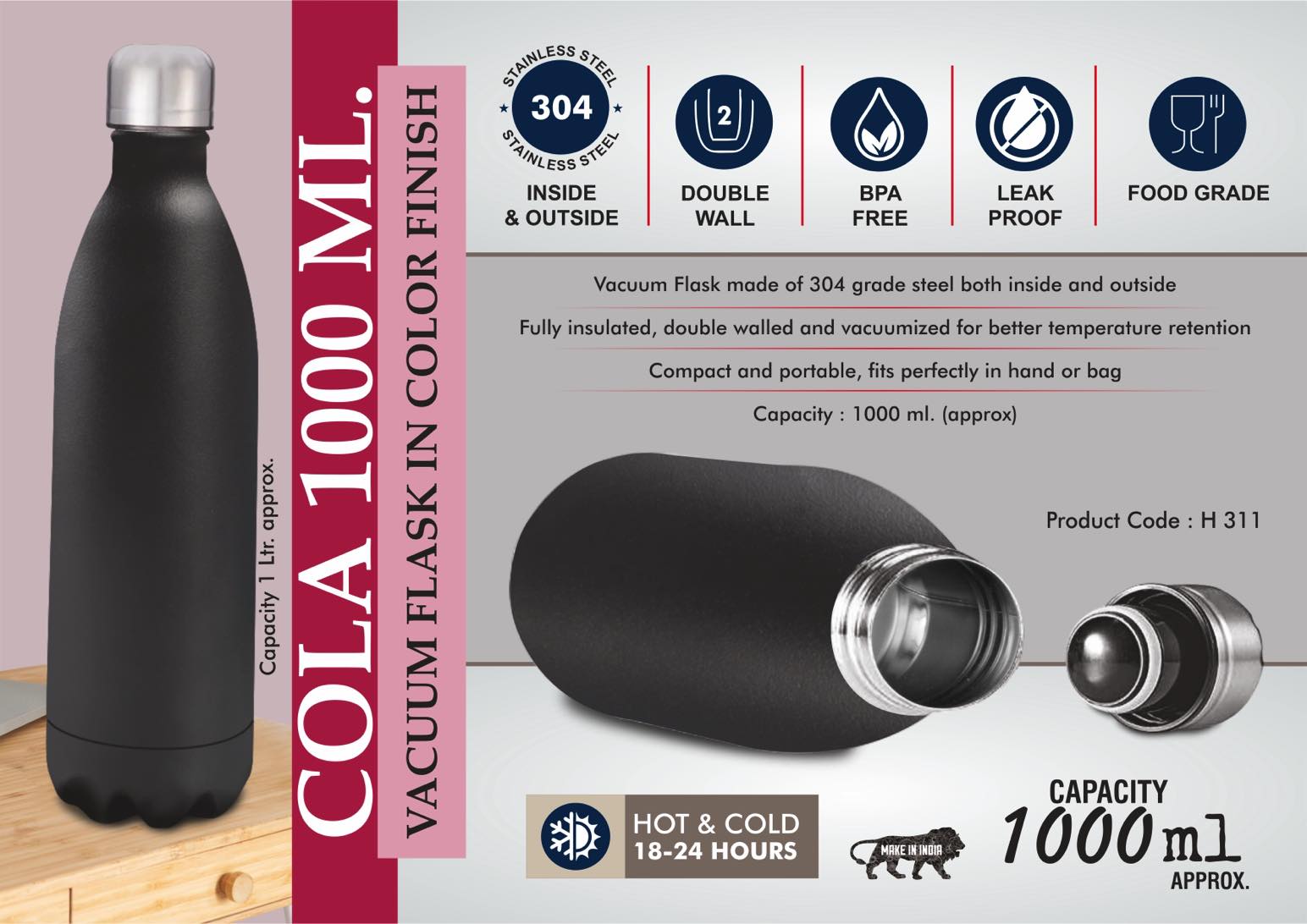 Cola 1000 ml Vacuum flask in Color Finish – 304 steel inside and outside – 18 hours hot/cold