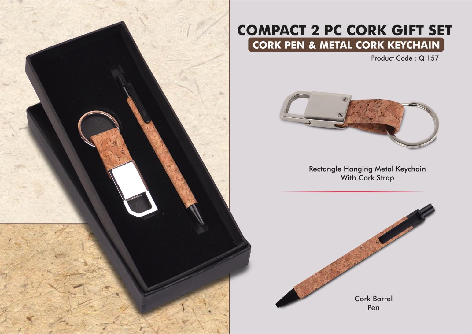 Compact 2 Pc Cork Gift Set- Cork Pen and Metal Cork Keychain