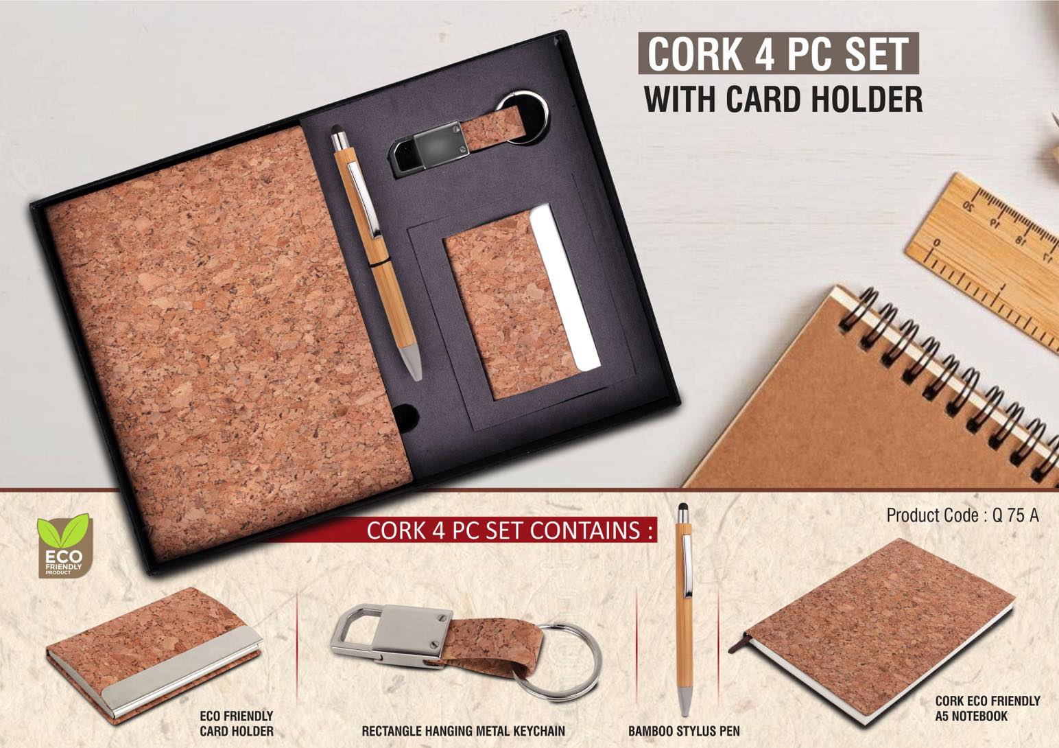 Cork 4 pc set- Cork notebook with Visiting Card holder, bamboo pen and keychain