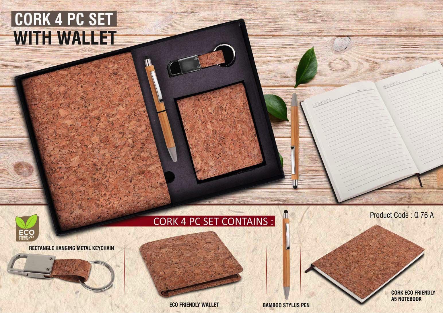 Cork 4 pc set- Cork notebook with Wallet, bamboo pen and keychain