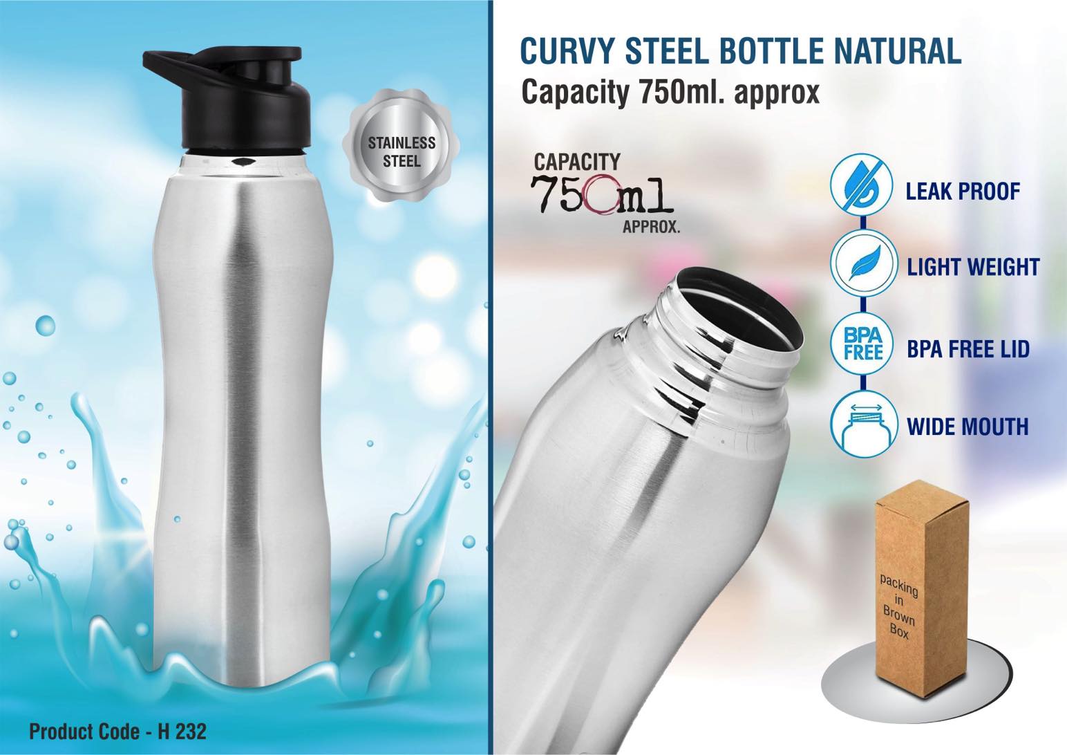Curvy steel single wall bottle Natural – Capacity 750ml approx