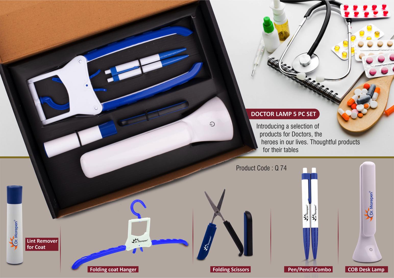 Doctor Lamp set- Folding Coat hanger, Lint remover, Folding scissors, Pen/Pencil combo, COB Desk lamp -5 pc set