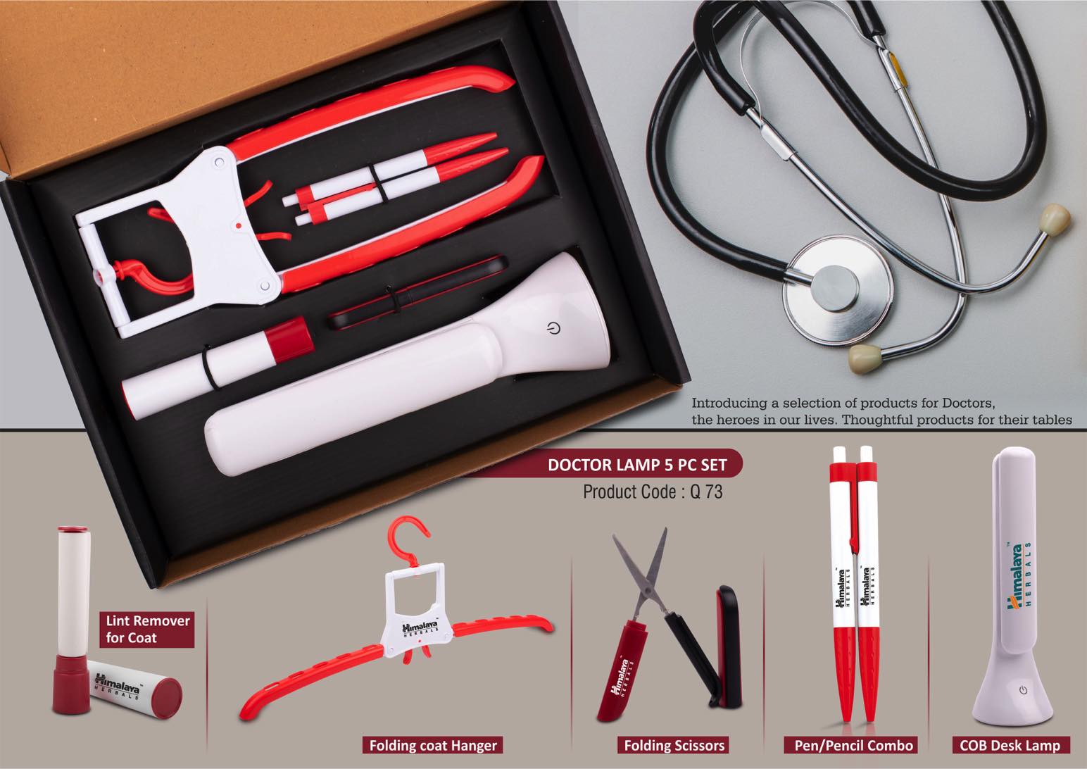 Doctor Lamp set- Folding Coat hanger, Lint remover, Folding scissors, Pen/Pencil combo, COB Desk lamp – 5 pc set