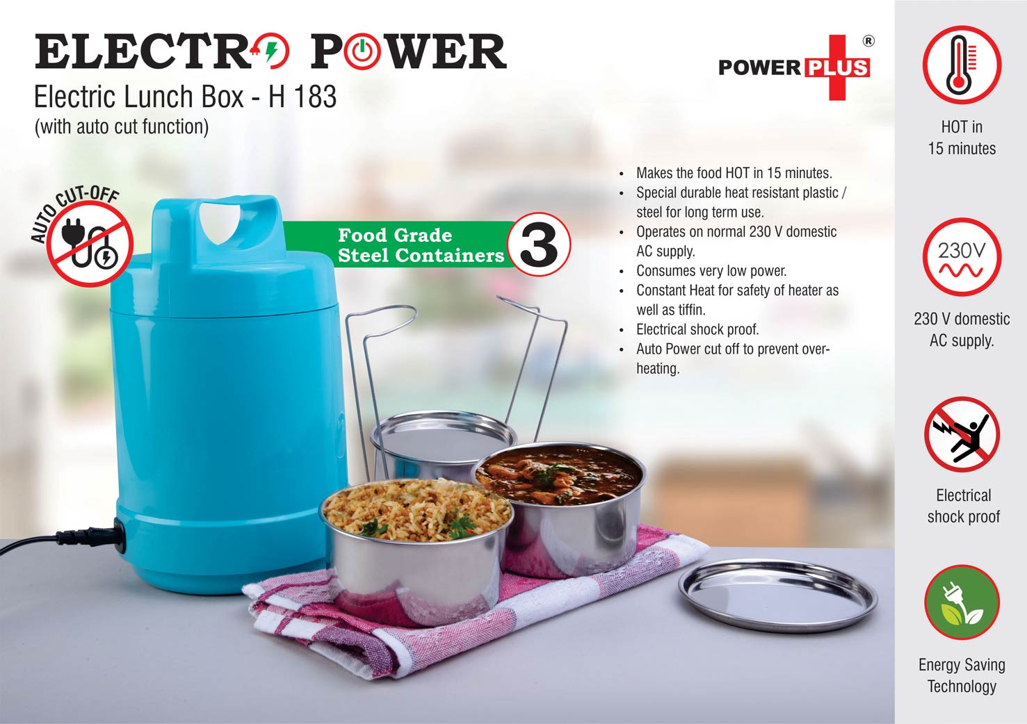 Electro Steel 3 container electric steel lunch box with Auto cut function
