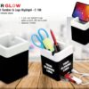 PowerGlow USB hub with tumbler and logo highlight- 3 USB ports with mobile stand